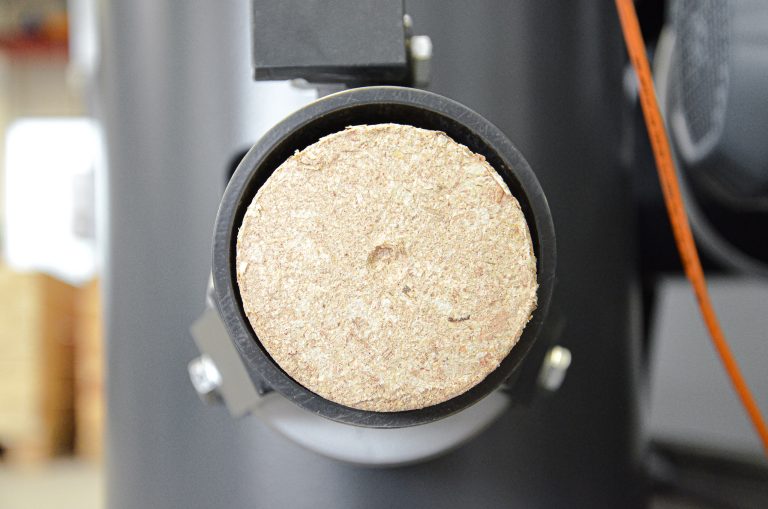 WEIMA briquetting press TH 514 compacts wood dust into high strength briquettes with 50 mm diameter