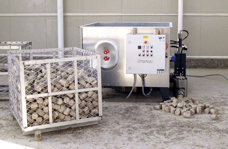 WEIMA briquetting press TH 820 produces briquettes from paper / cellulose filter dust