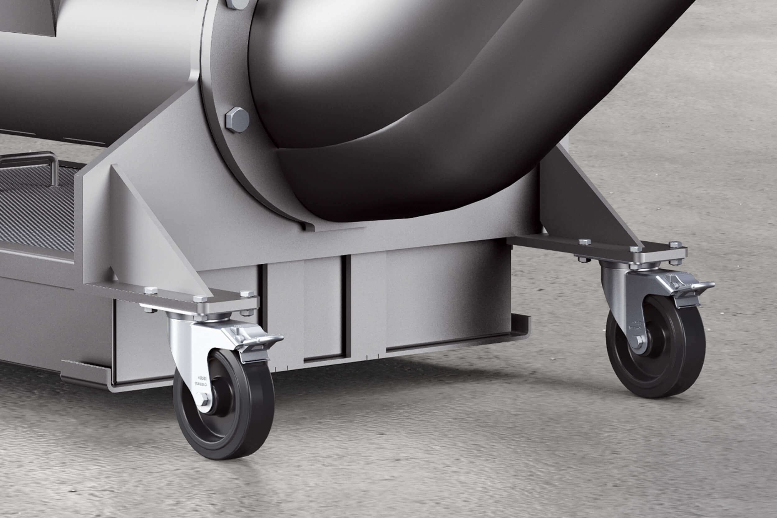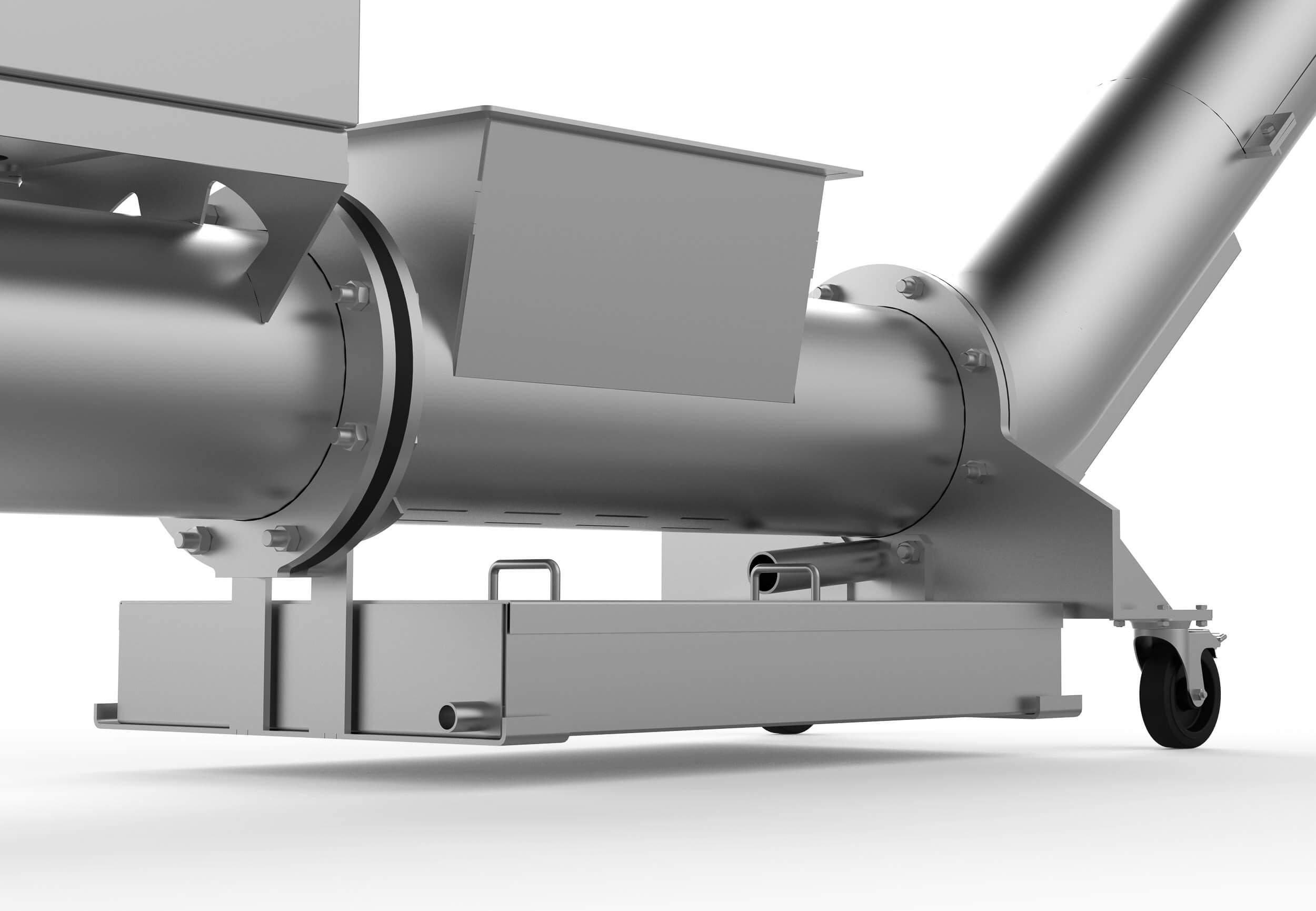 The lye released during the pressing process is collected in an integrated sump. From there, the liquid can be discharged in a controlled manner – either into the drain or back into the lye recirculation system. The specific connection solution is tailored to the customer’s operational requirements.