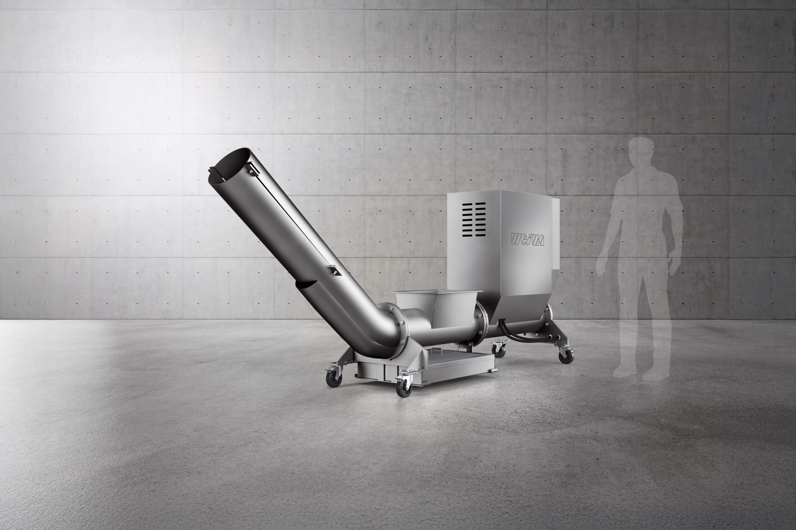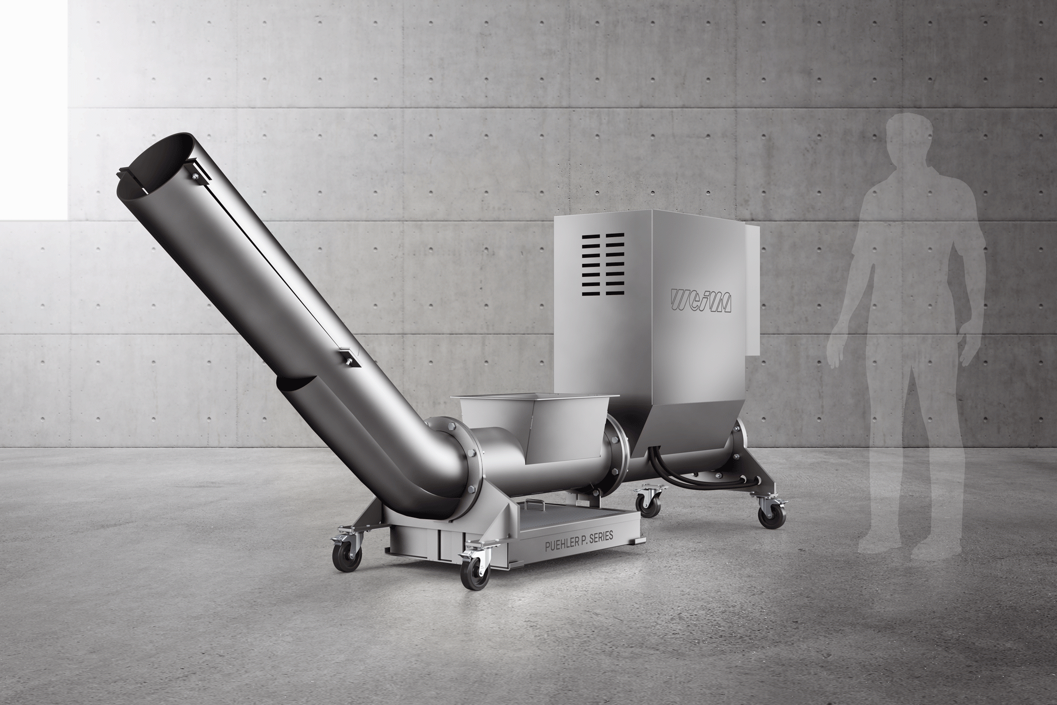 The WEIMA A.300 dewatering press has been specially developed to meet these requirements: it collects discarded labels directly from the process, compresses them into compact bales with a diameter of 300 mm and transports the material onwards with virtually no dripping. Thanks to its robust stainless steel construction, the machine is ideally suited for use in damp, alkali-laden environments and meets the high hygiene and durability requirements of modern bottling plants.