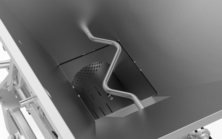 You have the choice between different hopper volumes: 220 l, 600 l, 800 l, 1,200 l or 2,000 l. In addition, a manual or automatic hopper lid can be fitted as a safety and hygiene protection.