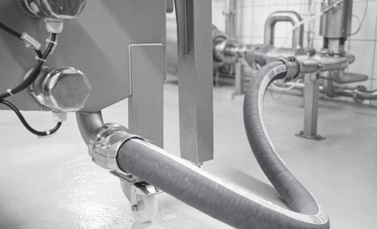 If required, liquid discharge can be automated with the aid of level sensors in the product drain pan. The level sensors control the pumping out of the pressed material and automatically switch off the recycling press when downstream processes come to a standstill. We use screw pumps to discharge pasty liquids and radial pumps for liquid materials.