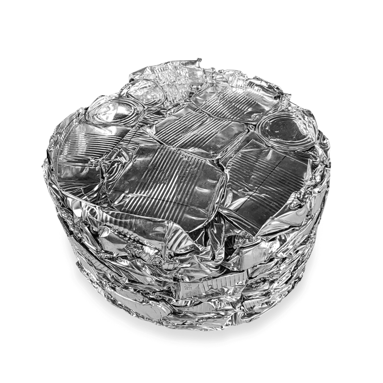 The wall of the pressing chamber is perforated to allow the emptied liquid to drain off. The sieve size can be individually adapted to your material properties. For pasty materials such as yogurt or sour cream, round holes up to twelve mm in diameter are usually selected. For liquids, on the other hand, sieve holes as small as 4 mm are possible. In any case, it is important that fine particles from the packaging do not get into the drain pan together with the liquid.