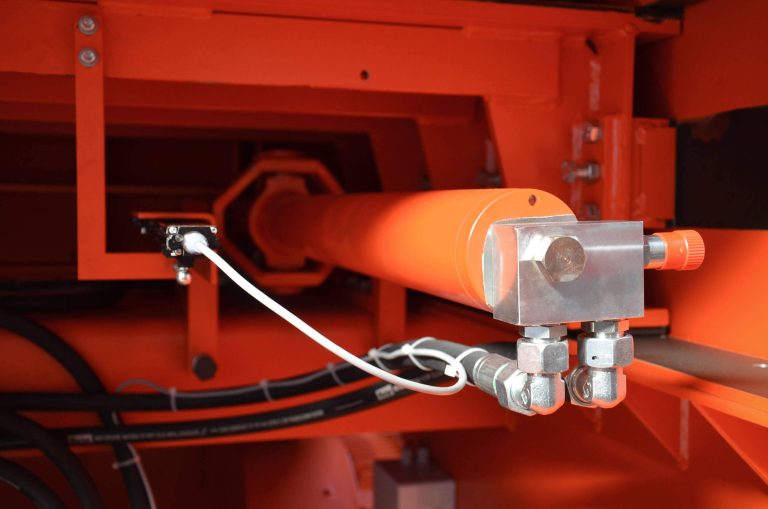 Particularly when shredding very thin materials such as films or fibers, it is recommended to use a segmented floor, which guides the ram even more precisely and prevents jamming. The shock valve at the end of the hydraulic ram also absorbs shocks to the ram, thus reducing wear.