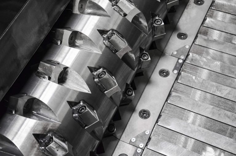 The hopper fulfills several tasks at once. First, the material to be shredded is fed through it – manually, mechanically, or by conveyor belt. The generous opening makes it easy to fill even very large parts. A decisive factor for shredding, however, is its special design, which is rounded at the front and thus effectively prevents material bridging. Even with bulky parts, the shredder cuts itself free. If required, hopper extensions and lids with gas pressure springs are available.
