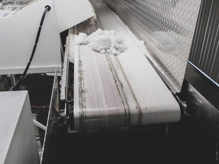 Optical swarf, along with the cutting fluid, is transported via Satisloh machinery to the WEIMA briquette press for separation.