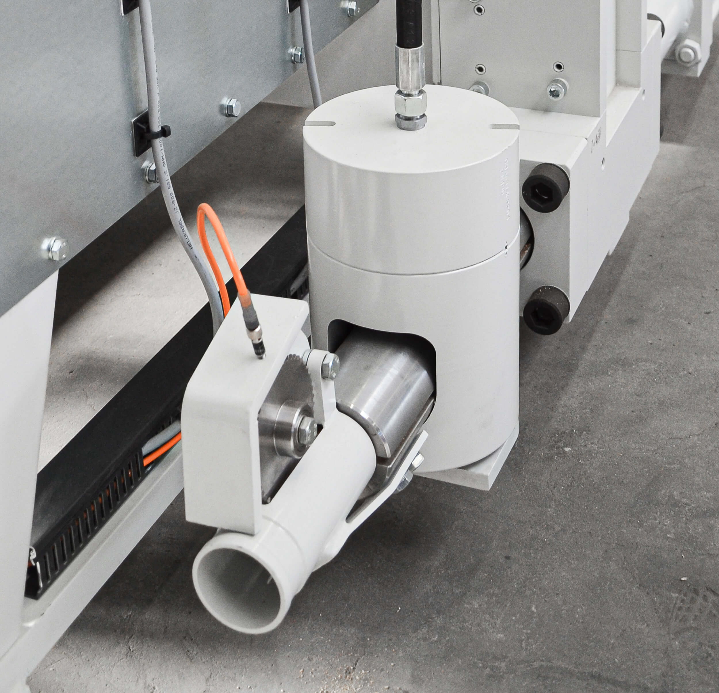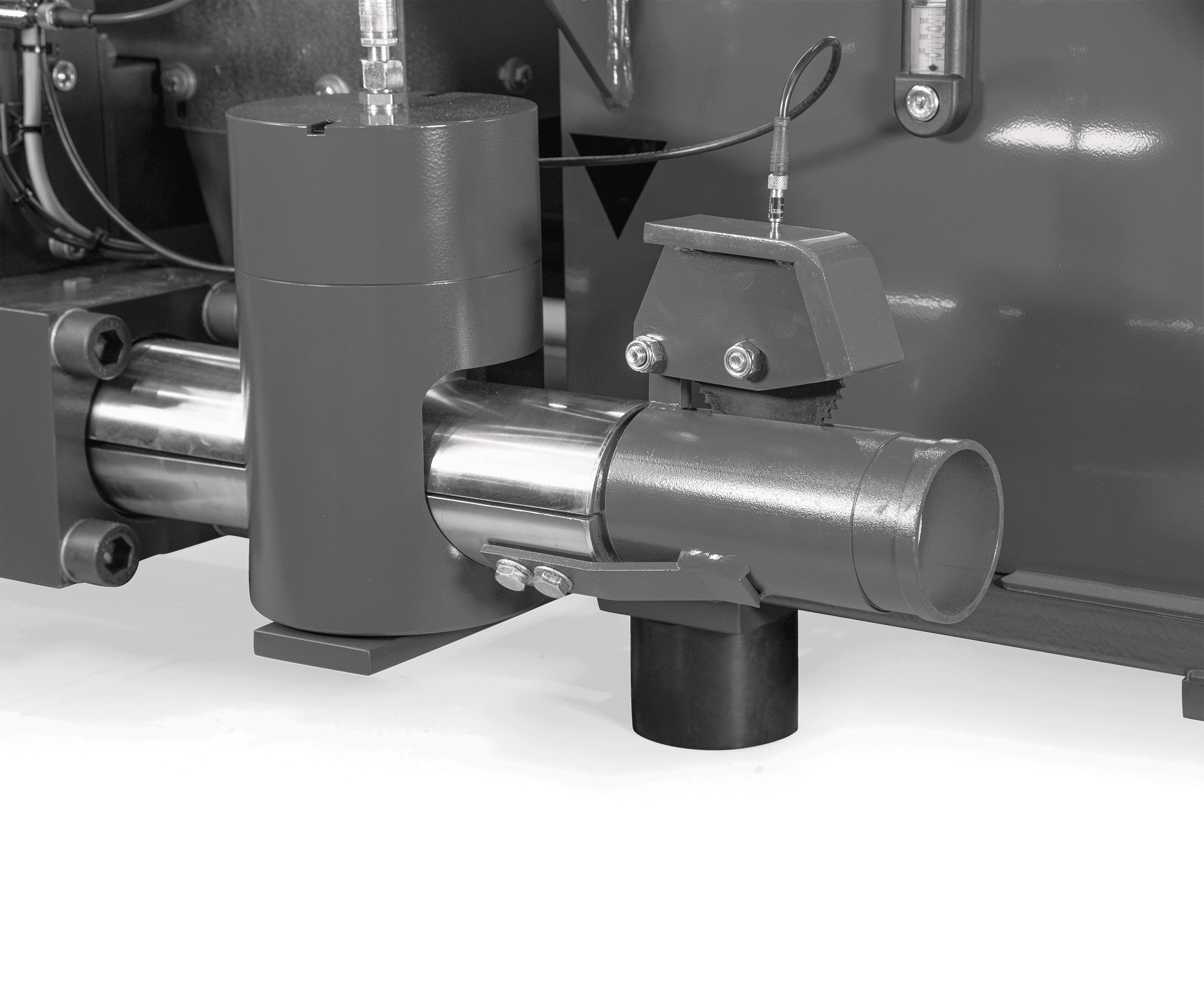 To ensure that the briquette length remains constant even when the material being processed changes, C Series briquetting presses are equipped as standard with an electromechanical briquette length monitoring system featuring a proximity switch. This is located directly in front of the tongs on the briquette discharge pipe.