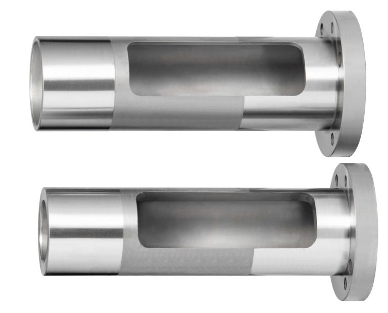 The extremely wear-resistant, chrome-plated pressing clamp is surrounded by a hydraulic closing cylinder. It holds the briquette produced by the pressing cylinder during pressing. For this purpose, both halves of the clamp are closed and opened again during discharge.