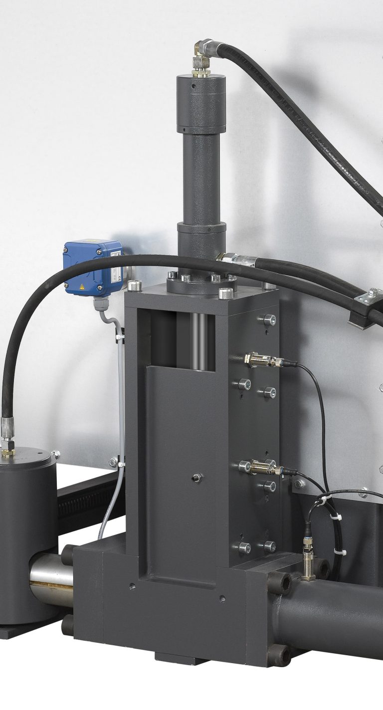 The compact hydraulic unit is located directly next to the feed hopper. It is temperature controlled. The pump motor is designed for long service life.