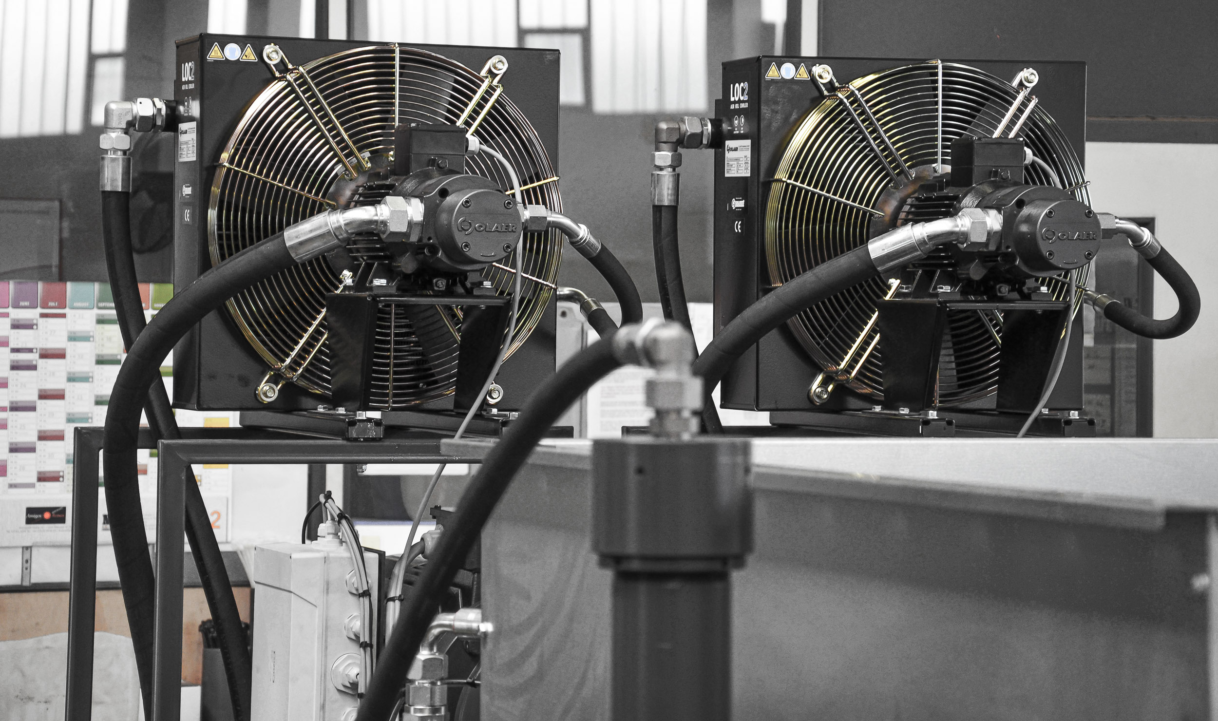 The machine is designed to operate under thermally stable conditions, even under heavy loads. An optional air or water cooling system compensates for temperature fluctuations in the hydraulic oil and keeps the oil temperature within the permissible range, even during three-shift operation. In addition, a safety switch protects the hydraulic system from overheating. This enhances operational reliability and supports continuous operation over long periods.
