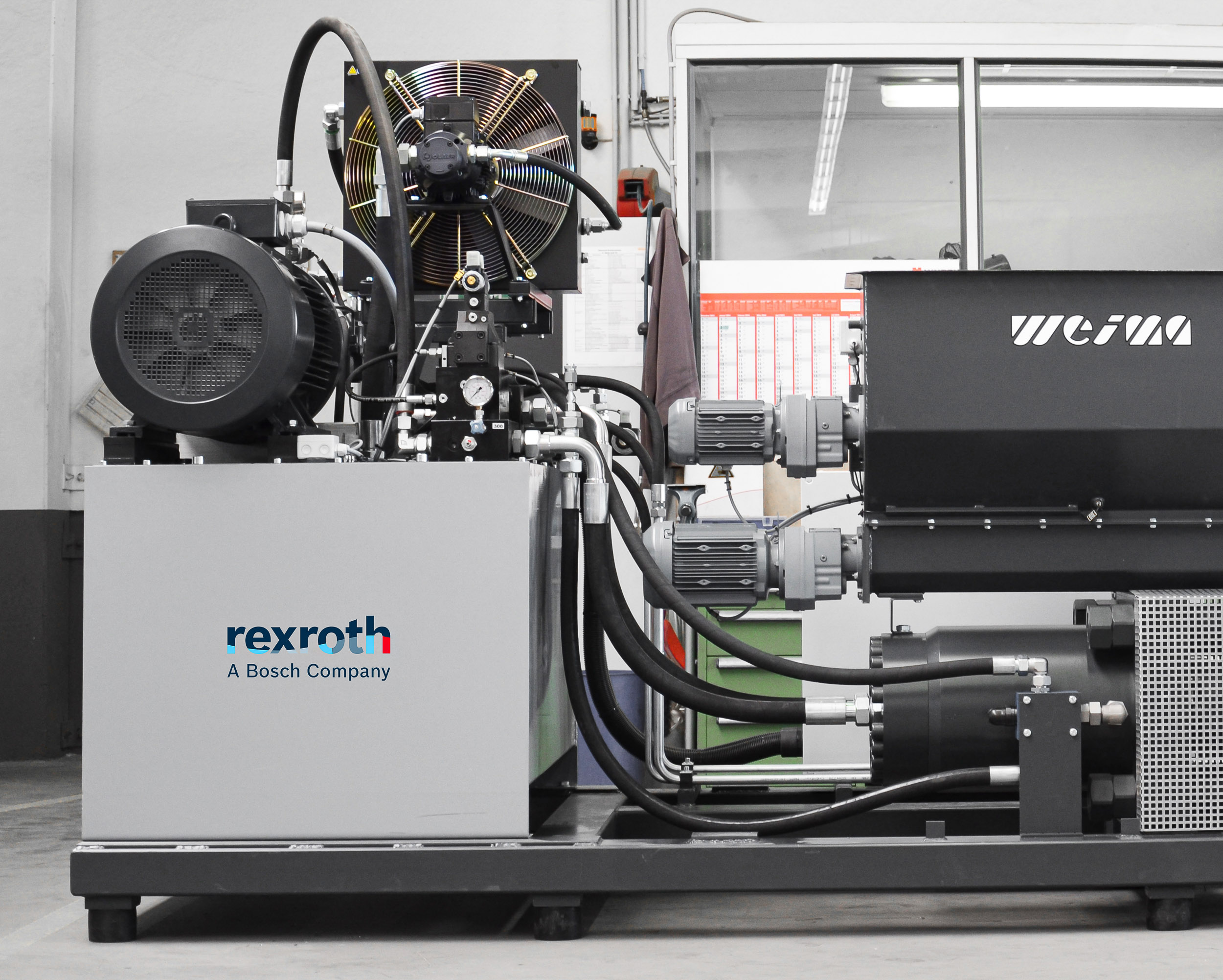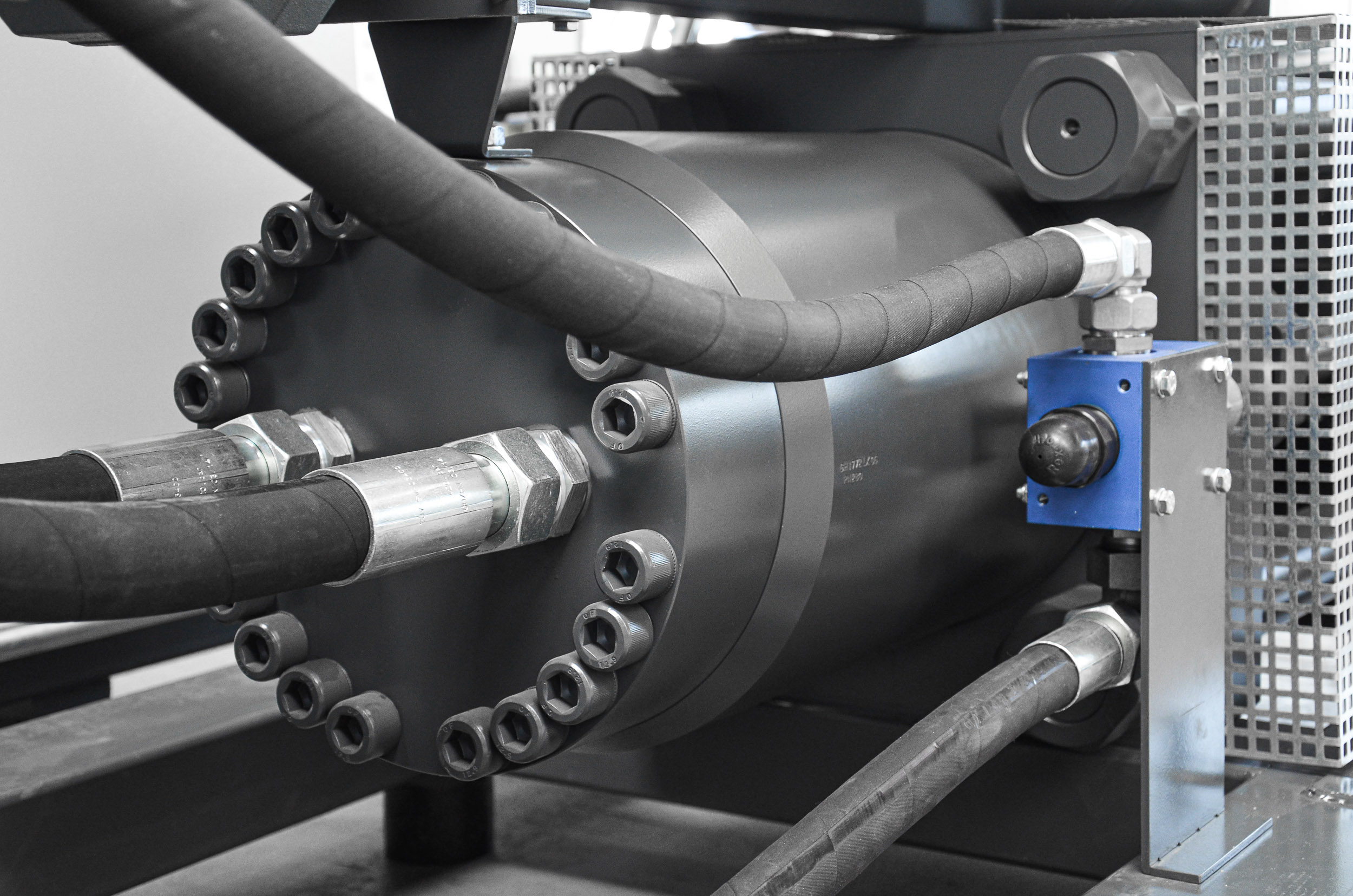 The separate oil tank of the Bosch Rexroth hydraulic power unit has a capacity of approximately 600 litres and is fitted with an efficient oil cooling system. Thanks to this large volume, the quality of the hydraulic oil can be maintained at a very high standard for a long period of time – making it ideal for use in multi-shift operations.