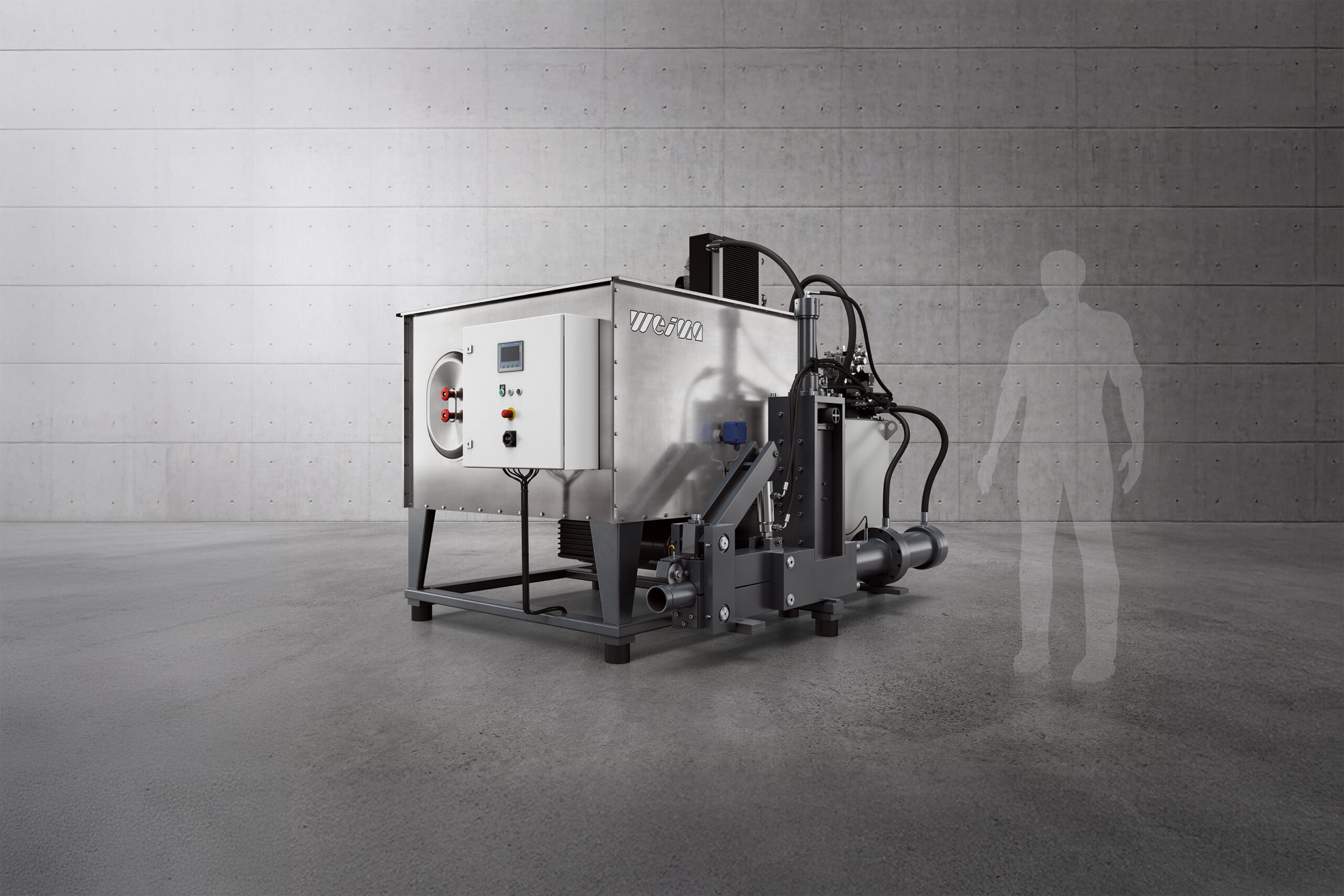 Areas subject to high wear are designed to ensure cost-effective operation. In the pre-compaction stage, bolted, easily replaceable PU plates are used on the filling cylinder, whilst in the compaction chamber a specially hardened wear bushing protects the stressed surfaces. Both components are designed for quick replacement. This reduces downtime and lowers maintenance costs over the entire service life.