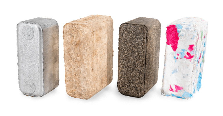 Accumulating wood waste is shredded in a WEIMA WL 8 single-shaft shredder and granulator. The shredded wood waste is then transformed into sellable briquettes with the help of a TH 1500 M briquette press.