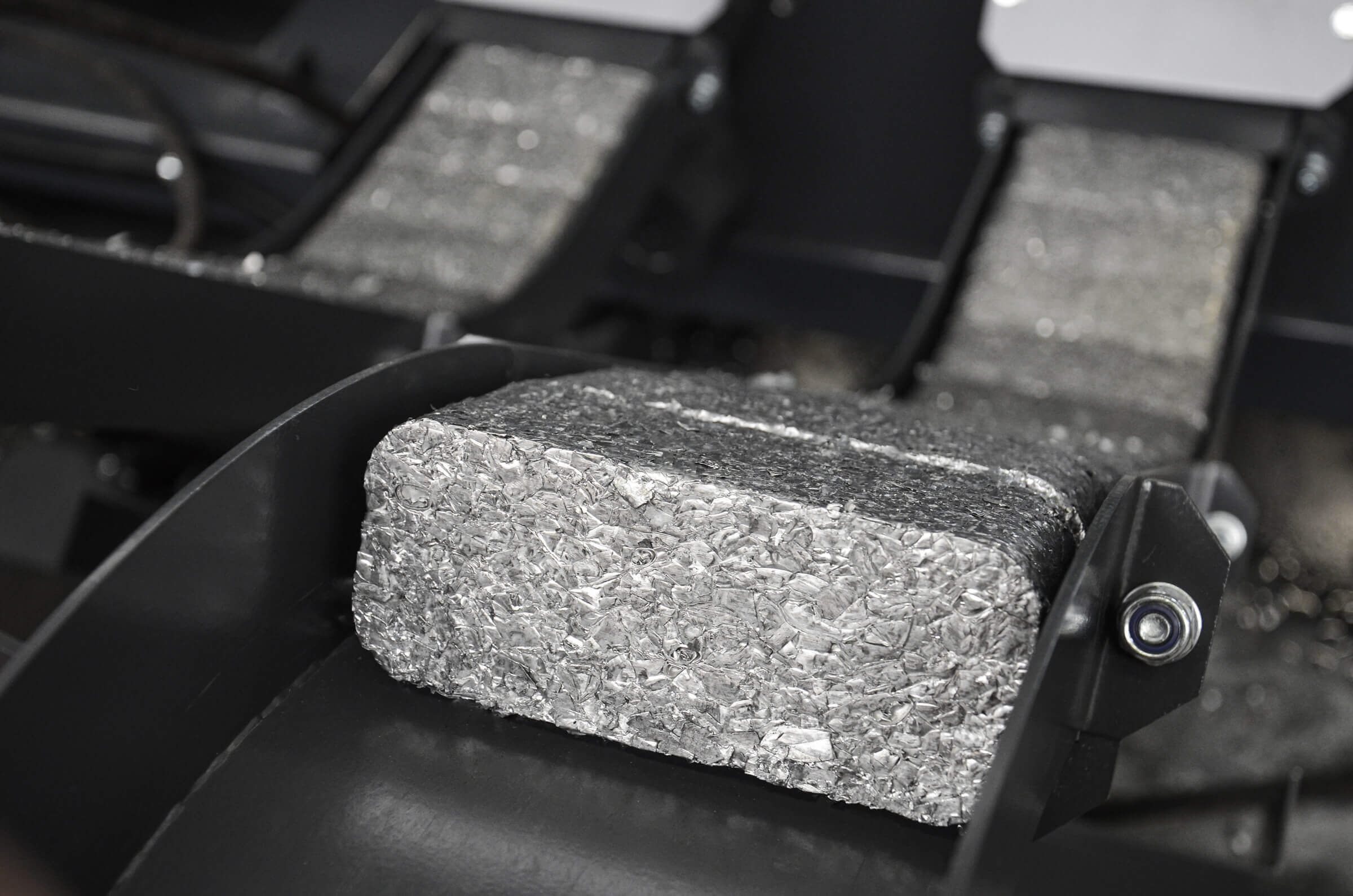 By reducing the volume, you save space and reduce transportation costs. In addition, the briquetting process enables the recovery of valuable cooling lubricants and oils that can be reused. The metal briquettes can be melted down directly and ensure less slag and less burn-off, which makes the melting process significantly more efficient.