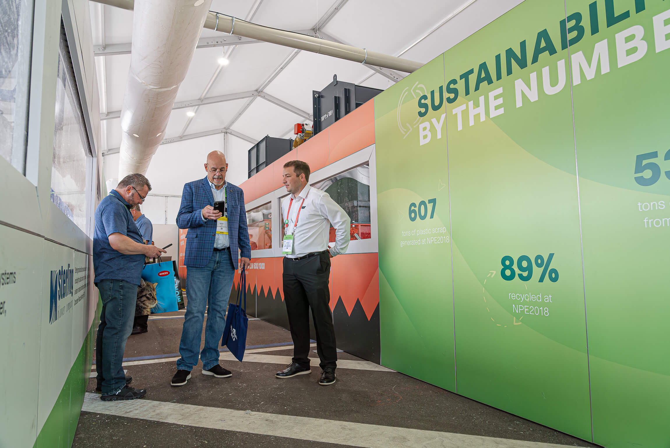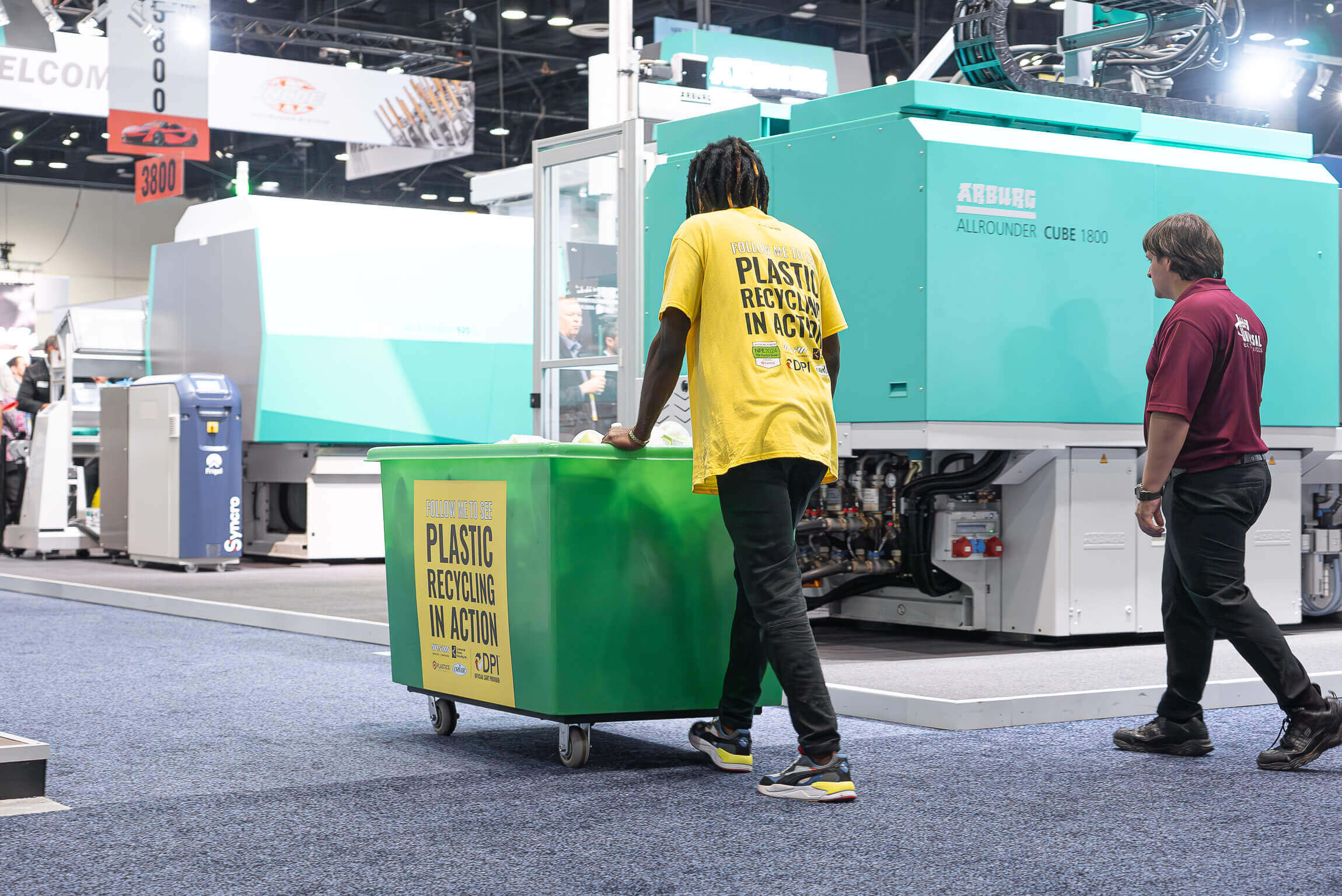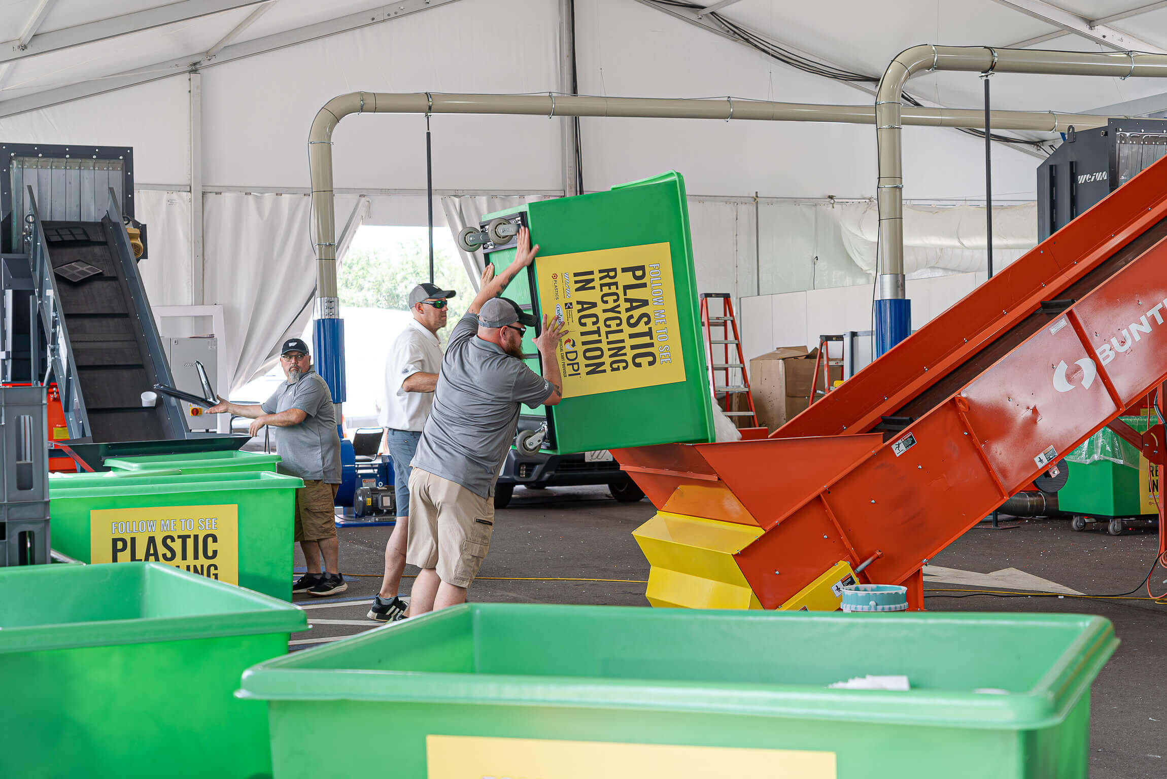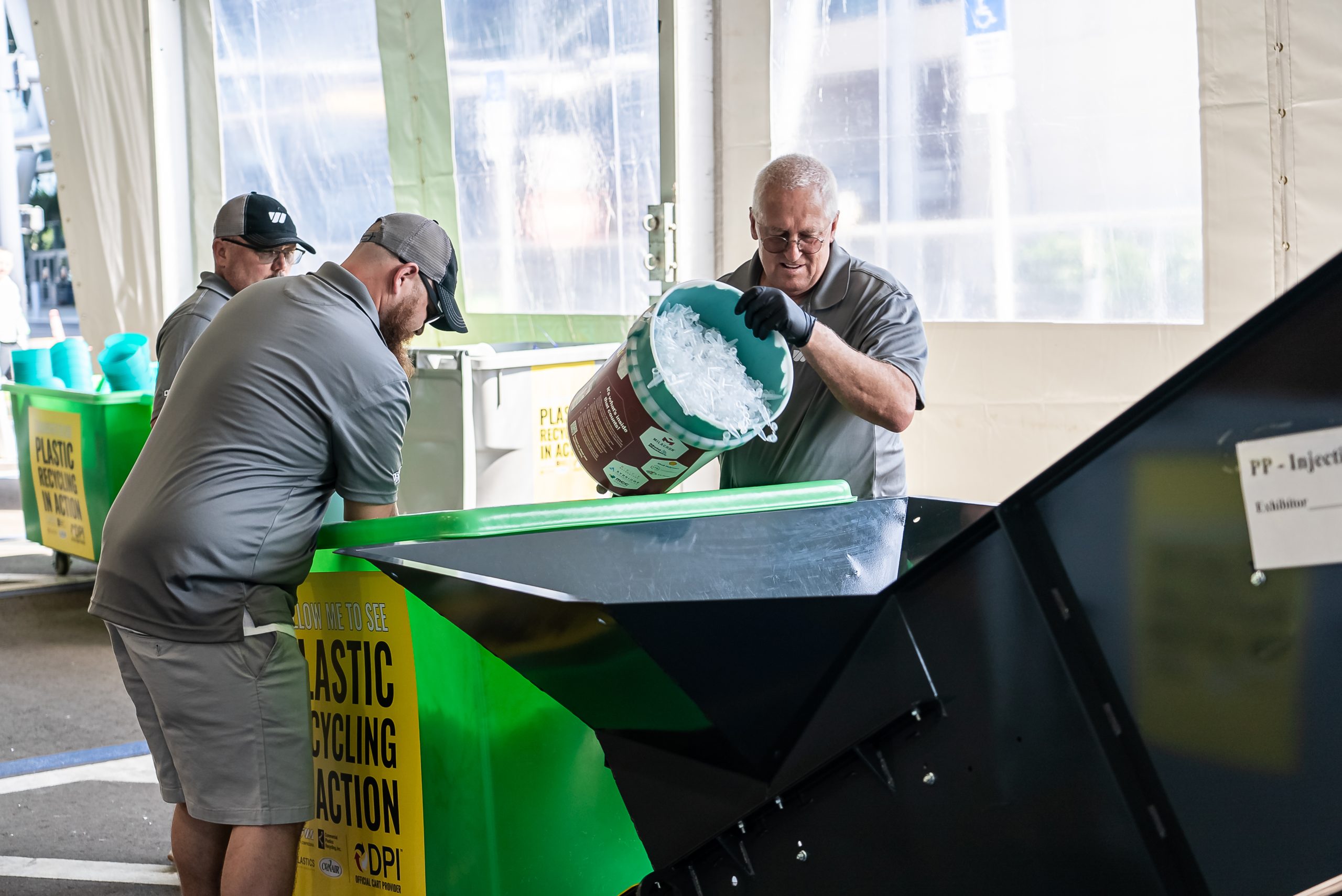 NPE2024’s Destroy Responsibly™ program achieved new heights this year, surpassing its previous iterations in 2015 and 2018. The Recycling Zone, located behind the West Hall, featured a WEIMA WLK 15 single-shaft shredder and two LM 600/1000 granulators in action. These machines processed pre-sorted plastic scrap generated from show floor demonstrations, pre-shredding it for further recycling. Commercial Plastics Recycling, Inc. then shipped the size-reduced plastic material off-site to be reintroduced to plastics manufacturers and transformed into new products.