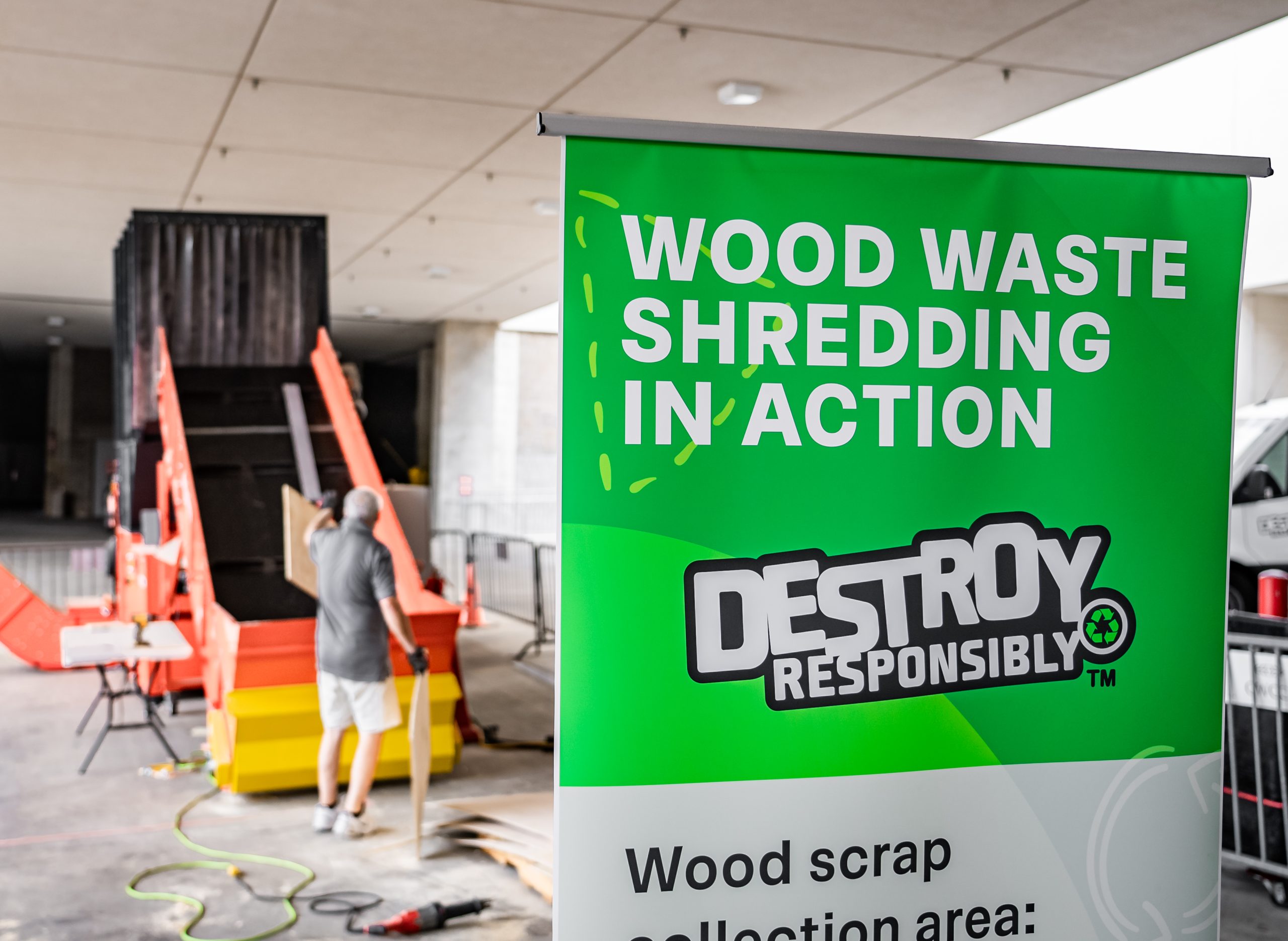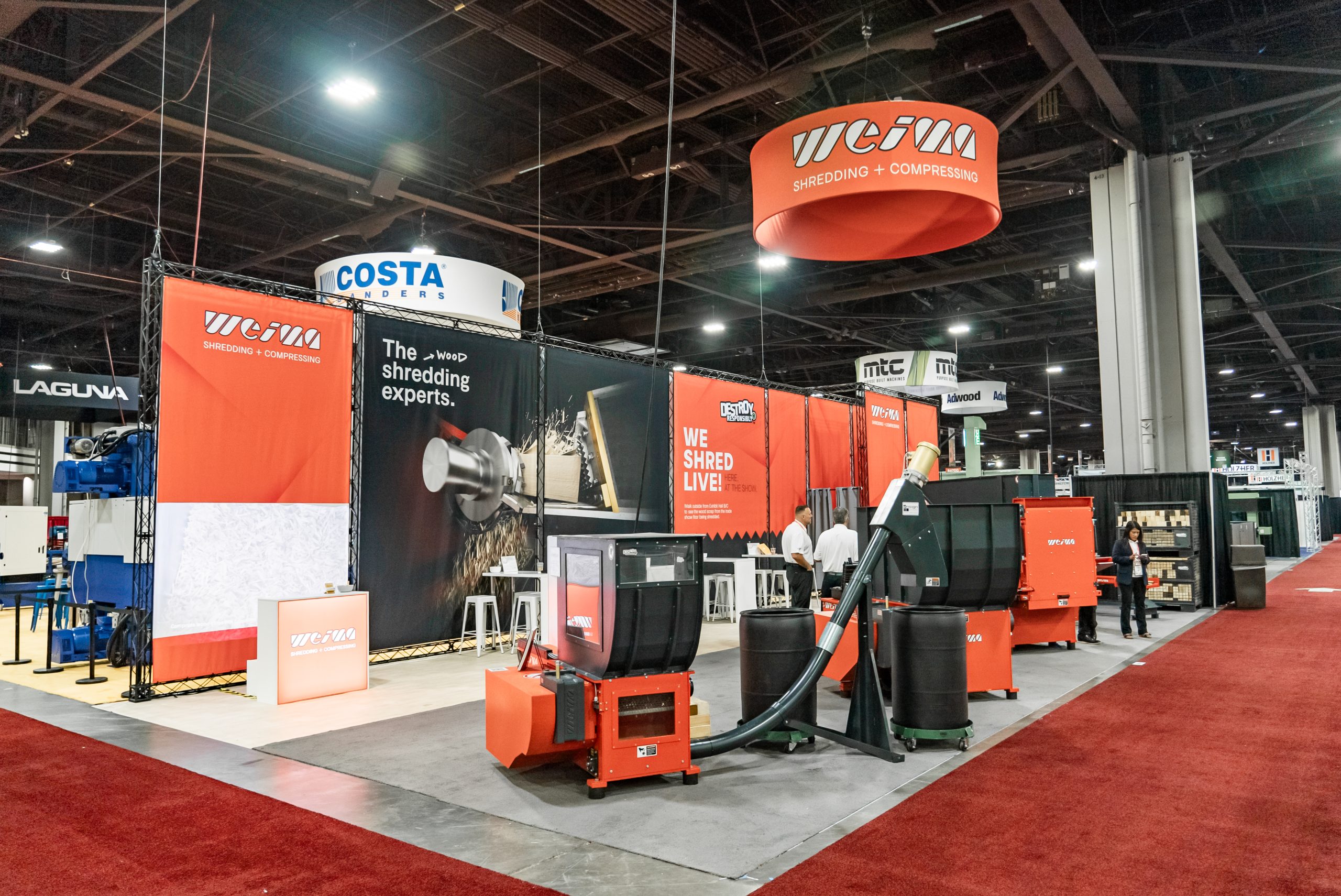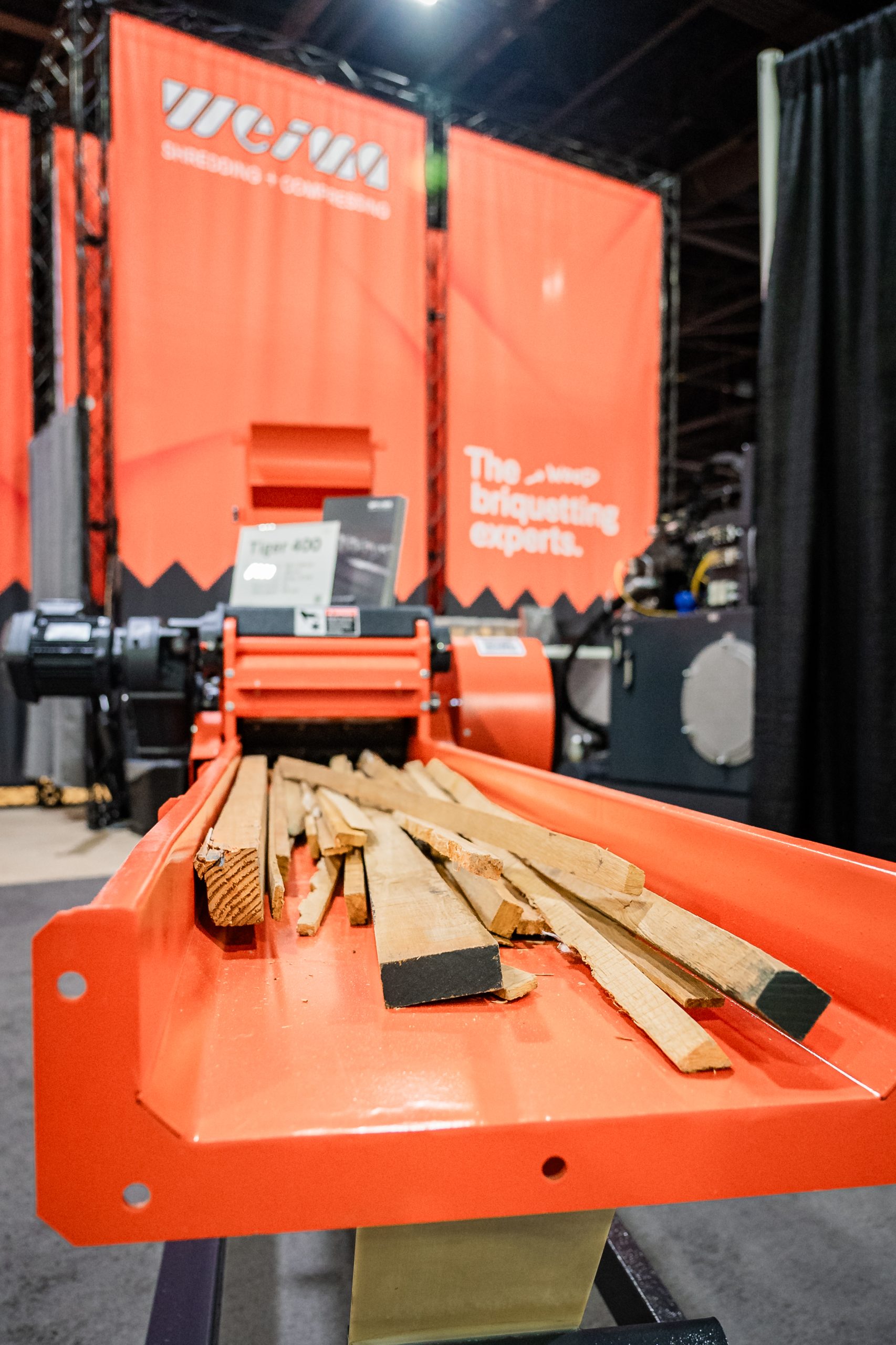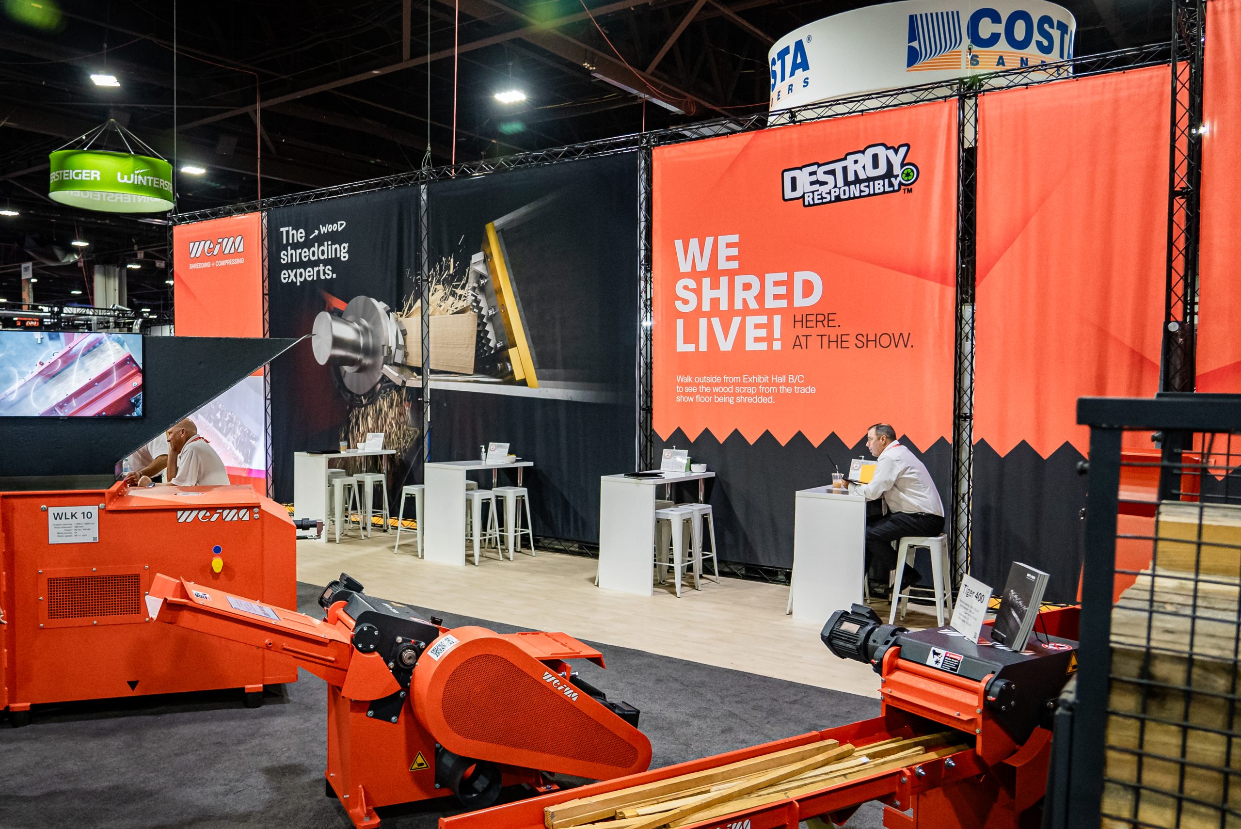 The Destroy Responsibly™ program by WEIMA aims to reduce the environmental impact of large exhibitions. Frequently at these events, machinery demonstrations on the tradeshow floor generate significant waste that is typically thrown away at the end of the show. WEIMA stepped in to divert some of that wood waste from a landfill so it can be given a second life.