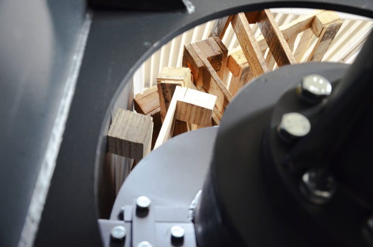 Typically primary crushers are used for disposable pallets and Euro pallets made of wood. Removal of nails or screws is not necessary. Metals can be separated afterwards. Used furniture from bulky waste, boxes or other containers can also be easily pre-shredded. In any case, there is a significant reduction in volume, which noticeably reduces piles of production waste.