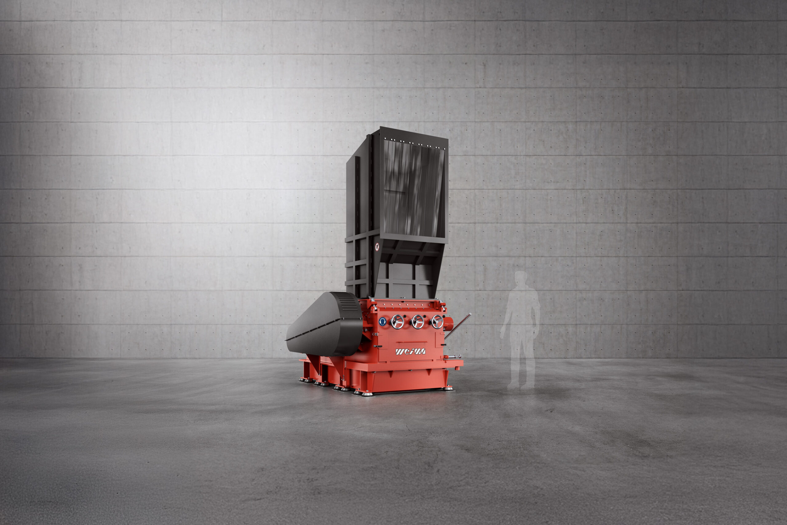 Cutter mills and granulators operate at high rotor speeds and, due to their design, generate higher noise emissions than slow-running single-shaft shredders. To effectively reduce noise levels, WEIMA offers various technical solutions.